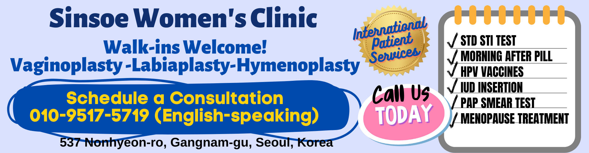Our International Gynecology team in Gangnam offers: